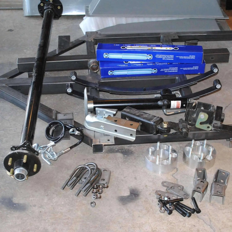Trailer Frame Parts to build a frame for your DIY Compact Camping Trailer. From a Harbor Freight Smooth Ride Retrofit to Frame Kits.