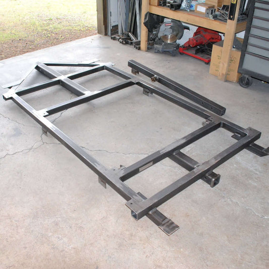 Our DIY Trailer Welded Frame Kits are the perfect base for any DIY Compact Camping trailer such as Explorer Boxes, Dinoots or your own creation. We use a removable tongue design for customer flexibility in length and coupler style, which also reduces shipping costs. Click here for more info.